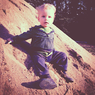 Today she finally walks, toddling all around the house carrying toddler treasures - a Lego person and a tube of hair conditioner.